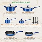 Specification: NutriChef 13 Pcs. Nonstick Kitchen Cookware PTFE/PFOA/PFOS-Free Heat Resistant Kitchenware Set w/Saucepan, Frying Pans, Cooking Pots, Casserole, Lids, & Utensils, Blue NCCWA13BU