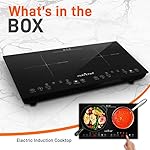 Specification: NutriChef Double Induction Cooktop – Portable 120V Digital Ceramic Dual Burner w/ Kids Safety Lock – Works with Flat Cast Iron Pan,1800 Watt,Touch Sensor Control, 12 Controls – PKSTIND48, Black