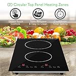 DUAL HEATING ZONES: This kitchen tabletop burner by NutriChef features two top panel circular heating zone with independent adjustable temperature setting so you can cook 2 dishes at the same time