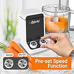 Features: – Quiet Powerful Motor – Includes 6 Attachment Blades: Slicer/Shredder Blade Disc, Masher Blade Disc, Chopper – Blade, Knead Dough Blade, Emulsifying Blade, and Citrus Juicer – Quick to Put Together – Silent Strength, Ultra-Quiet – Energy Efficient with Low Power Consumption – Pre-set Speed Function – Compact Design – Easy to Store and Clean – Electronic Overload Protection – Every Part (except the base with the motor, cup & gearbox) is Dishwasher Safe – Silicone rubber bottom suctions in order to hold strong on countertops while in use What’s in the Box: – (1) Shredding/Slicing – (1) Masher Blade Disc – (1) Top-rated S blade – (1) Emulsifying – (1) Kneading – (1) Citrus juicer attachment – Power Cable Technical Specs: – Construction Material: ABS Housing, AS Cup – Voltage: AC120V, 60Hz. – Power Output: 600W – Load Capacity: 12 Cups for Dry Ingredients, 9 Cups for Liquid Ingredients – Continuous Use: =1min – Power Cable Length: 3. 28’ ft. – Product Dimension (L x H): 13. 78’’ x 7. 48’’ x 13. 58’’ -inches