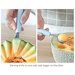 ✈. The ball digger allows you to scoop out even fruit or vegetable balls and make exquisite meals. There is a sharp carving knife on the other end of the ball picker, which allows you to carve creative and complex designs on the fruit. It is very easy to use and operate. A good assistant can make your life colorful and full of surprises. Size: Length 23.5cm Scoop Diameter: 3cm Weight: 35g/slice, cut and shovel vegetables, biscuits, cakes, watermelon, etc. A great tool for every kitchen!