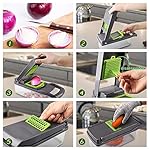【SAVING TIME AND EFFORT】Ultra-sharp food chopper can help you shorten Prep time comparing with traditional blades chopping/dicing/slicing. The hardened stainless steel vegetable chopper is easy to chop or slice veggies and fruits with 1 easy motion every time.