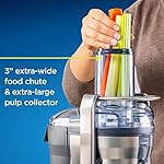 EXTRA-LARGE CHUTE: Electric juicer has a 3-inch extra-large food chute that fits most whole fruits and vegetables, which means less prep work and a wider range of foods to juice; also includes an extra-large-capacity pulp collector