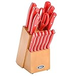 Specification: Oster Evansville 14 Piece Stainless Steel Cutlery Block Set, Red Handles