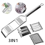 【3-in-1 Slicer】It comes with 3 interchangeable blades, to peel or slice the tomatoes, onions, carrots, cheese, cucumber and cauliflower into different shapes, sizes and thicknesses as per your needs in different occasions.