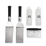 includes two griddle spatulas, one griddle scraper, two fine-tip plastic bottles