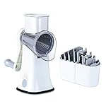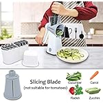 Space-saving and easy to clean: the structure of the rallador de vegetale is removable for cleaning, easy to disassemble, and the two blades on the drum can be removed for cleaning. It can be used in the dishwasher, and all blades can be stored in a box Easy to store and save space.