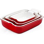 RAZCC Porcelain Bakeware Set for Cooking, 13 x 9.8 inch Ceramic Rectangular baking dish Lasagna Pans for Casserole Dish, Cake Dinner, Kitchen, Banquet and Daily Use (Red)