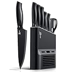 HIGH QUALITY: Superior high carbon stainless steel blade are applied with black BO Oxide technology, knife blades with a ceramic nonstick coating that makes slicing even easier and the blades stay sharp longer. Professional knives set for kitchen is practical, sharp and precise for cutting food. Resistant to corrosion and scratch.