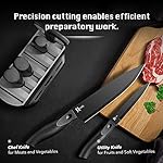WIDELY USE: Multipurpose chef knife set is the perfect combination of modern design & durability essential for every day kitchen needs. Kitchen knife set is a complete set for Chopping, Slicing, Dicing, and Cutting your meat/vegetables/fruits. Best gift for new college students, grads, newlyweds, or anyone setting up a first time kitchen.