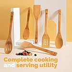 PRACTICAL DESIGN AND FUNCTIONALITY- Designed to perform an array of kitchen tasks, this wooden kitchen utensil set features contoured heads so you can perform precise functions. Smooth, comfortable handles make using them easy. Included slotted, solid, and turner wooden spatula makes flipping omelettes and mixing ingredients easy, while a solid and slotted wooden spoon make preparing sauces and tasting soups simple. Spoon fork provides versatility for sipping, eating, or serving.