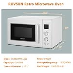 Specification: ROVSUN 0.9 Cu.ft Retro Countertop Microwave Oven, 900W, 5 Micro Power, Auto Cooking & Delayed Start Function, with Glass Turntable, Viewing Window, Child Lock, ETL Certificated (White)