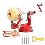 Specification: RUYIKA Apple Peeler, 3 in 1 Durable Heavy Duty Die Cast Aluminum Zinc Alloy Fruit Peeler Slicer Corer, Stainless Steel Blades, with a Steel Fork and a Peeler, Base with Suction Clamp, Red