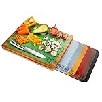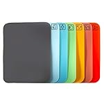 Includes 7 brightly color-coded cutting board mats that make clean up easy and help prevent cross contamination when preparing fruits, vegetables, cheese, meat, fish, poultry, dough and baked goods