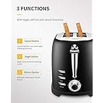 Specification: SHARDOR Toaster 2 Slice, Retro Extra-Wide Toaster, Bagel/Defrost/Cancel Function/Removable Tray, Stainless Steel, Black