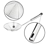 Wire Strainer: The concave net catches food securely while releasing oil and and other residue. Perfect for frying foods, like potato chips, chicken legs, and scoop up noodles, Spaetzle, Pasta, Spaghetti and more.