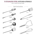 Specification: Stainless-Steel Kitchen Utensil Set – 10-piece premium Nonstick & Heat Resistant Kitchen Gadgets, Turner, Spaghetti Server, Ladle, Serving Spoons, Whisk, Tongs, Potato Masher and Utensil Holder