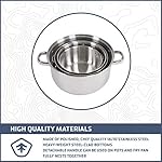 HIGH-QUALITY MATERIALS: This pots and pans set is made from kitchen quality 18/10 stainless steel and triple-Ply 2.0mm aluminum-clad bottom for superior conductivity and even heating. These materials make for real easy cleanup.
