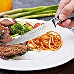 【HIGH QUALITY STEAK KNIFE】premium high-carbon stainless steel ensure its exceptional strength, durability and stain resistance, strong anti-corrosion & rust-free abilities.Serrated edge is ideal for cutting steak, pork, and poultry.