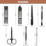 Multi-Functional Manicure Set : 7 pcs Manicure tools, 1x Fingernail Clipper, 1x Toenail Clipper, 1x Nail cleaner pick, 1X Nail File, 1x Eyebrow Tweezers, 1x Sharp Scissors,1x Ear Pick, to meet all the essential care of your hand, feet and face. Durable & High Strength: all tools are made of High Quality Carbon Steel , which is higher thickness and hardness, double sharpen, non-slip designed and anti-rust !