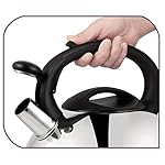 T-fal makes enjoying a cup of tea an easier and even more delightful experience with the 3 quart polished stainless steel kettle. Durable stainless steel construction ensures lasting performance and beauty. The stylish design, with an ergonomic black handle, is a welcome addition to any kitchen. One push opens or closes the spout cover. The base is wide for greater contact with the heating source to bring water to a boil quicker. When the water is ready for pouring, the spout cover will alert you with a pleasant whistle. The conveniently sized opening has a snug-fitting lid and allows enough water for a small tea party. The T-fal Stainless Steel 3-qt Tea Kettle is covered by a Lifetime Limited Warranty.
