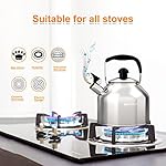 ♨Energy-Saving Fast And Safe Heating: The teapot for stove is composed of food-grade 430 stainless steel, iron and aluminum, forming a heating capsule, and the bottom rises quickly and evenly. This means less waiting time and a more efficient tea or coffee brewing experience! The Heat-Resistant Handle allows you to hold the teapot with your bare hands without being burned, and no plastic will touch the water