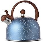 Specification: Tea Kettle – VONIKI 2.5 Quart Tea Kettles Stovetop Whistling Teapot Stainless Steel Tea Pots for Stove Top Whistle Tea Pot With Wood Pattern Anti-slip Handle Water Kettle Gift Blue