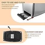[ EASY TO CLEAN & COOLING UPGRADE ]: The bottom of the toaster 2 slice has a removable crumb tray in which all the bread crumbs are collected. All you need to do is clean the two slice toaster’s removable crumb tray. Stainless steel toaster has an upgraded heat dissipation function, which can protect the body and extend the life of the toaster (It’s normal for toasters to get hot when baking).
