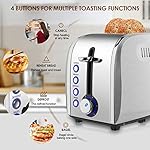 Specification: Toaster 2 Slices, Stainless Steel JEWJIO Retro Toaster with 1.5″ Extra Wide Slot for 6 Bread Shades Setting/Bagel/Defrost/Reheat/Cancel Function/Removable Crumb Tray 800W, Classic Silver