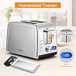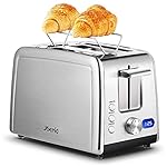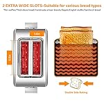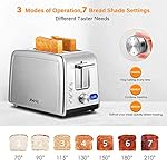 Specification: Toaster 2 Slice,Compact Stainless Steel Toaster with 7 Setting Shade and Double Side Baking,Extra Wide Slot Bread Toaster with Warming Rack,LED Timer Display,Defrost/Reheat/Cancel Function,Removable Crumb Tray,800W