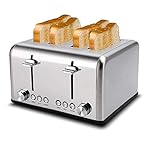 Specification: Toaster 4 Slice, CUSIMAX Stainless Steel Toaster, Bread Toasters 4 Extra Wide Slot with Bagel/Defrost/Cancle Function,6 Shade Settings with Removable Crumb Tray