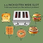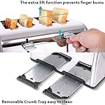 √ 4 Wide Slots—5.5 inches long slots design and 1.4 inches extra wide slots are accommodating for a variety of shapes and sizes of bread from sliced bread to hamburger buns. Removable crumb tray clean easily and keep fresh smelling for your bread.