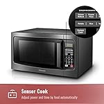 Specification: TOSHIBA EM131A5C-BS Countertop Microwave Ovens 1.2 Cu Ft, 12.4″ Removable Turntable Smart Humidity Sensor 12 Auto Menus Mute Function ECO Mode Easy Clean Interior Black Color 1100W