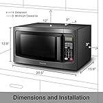 Black Stainless Steel exterior, 20.5 x 17.1 x 12.8 inch (w x d x h), large 1.2 cubic feet capacity, cavity 13.07 x 15 x 9.5 inch (w x d x h), turn table 12.4 inch (diameter)