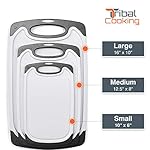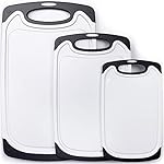 Built to last – Our multi-piece set offers three sizes from big cutting boards to small cutting boards for kitchen versatility. You can count on thick, dishwasher-safe cutting boards with non-skid edges that grip to counters and stay in place. Food grade plastic is BPA free. Heavy duty and non-porous, our boards resist deep surface cuts that can wear down the boards and limit sanitation.