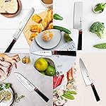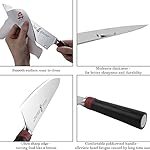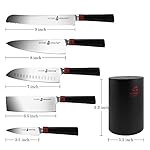 【SUPERRIOR QUALITY STEEL】Each knife is adopted high-quality AUS-8 stainless steel, which enjoys a high reputation in the industry. Each blade is featured special-forged technology with a precise vacuum heat-treatment and nitrogen cryogenic tempering, it ensures you the superb hardness, flexibility, durability, as well as stunning cutting performance.