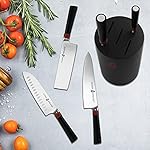 【KNIFE STORAGE BLOCK】Stylish design knife block may keep your kitchen more neat and beautiful. The stable wooden block for our knife set keeps all knives organized without taking up too much space. And the wooden block will also protect your knives from becoming dull or scratched, while avoiding the mess on the countertop.