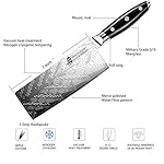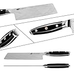 ✅【HIGH-STANDARD CRAFTSMANSHIP】Our experienced kitchen knives smiths hand sharpen the screamingly sharp edge with traditional Honbazuke method to be 8-12 degree per side.Our state-of-the-art technique and facility balance the contradictory relationship between malleability and hardness of the steel precisely. The handle is made of G10 fiberglass composite materials that feature superior lasting properties. It is nearly immune to extreme temperature or humidity.