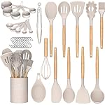 Specification: Umite Chef Kitchen Cooking Utensils Set, 33 pcs Non-Stick Silicone Cooking Kitchen Utensils Spatula Set with Holder, Wooden Handle Silicone Kitchen Gadgets Utensil Set (Khaki)