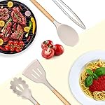 ✅HIGH TEMPERATURE WITHSTAND:The Silicone Cooking Utensils can withstand high temperatures up to 446°F/230°C. All-around silicone added to the softness, no longer worry food will stick your cookware. Silicone head protect your pans, keep the cookware surface not scratched or dented. Extend the life of all your kitchen pans.They are scratch resistant, unlike plastic and rubber utensils that will easily melt or metal kitchen utensils harm your nonstick pots