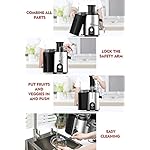 STABILIZATION AND ANTI-DRIP FUNCTION – Juicer bottom equipped with non-slip rubber feet and allows you to use the juicer safely and more stable. Practical anti-drip spout prevents dripping after extraction and keeps working top clean. In addition, the safety lock arm ensures that the cover remains tight during extraction. The overload protection system will shut off the juicer once overheating.