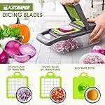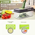 Safe To USE–With this vegetable chopper blades are ultra sharp, Please be in strict accordance with the instruction and pay attention when assemble or disassemble. Avoid installing violently and using blades on inappropriate ingredients, which leads to blades bend or damage. No putting blades randomly, after rinsing and drying, pls collect them into the container and keep them away from children.