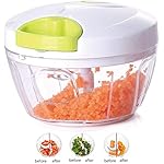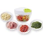 ★TIME SAVING AND MUTI-FUNCTIONAl : This speedy manual food chopper will help you cut vegetables, fruits and nuts.The garlic chopper will save much time in the kitchen. Putting the food into the bowl and pulling the rope once can chop food 15 times. Even the onion will not make your eyes watery. You can also make dips and chutneys in it .This hand pull chopper not only chops vegetables and fruits, but also can be as mincer and grinder to mince boneless meats and cottage cheese.