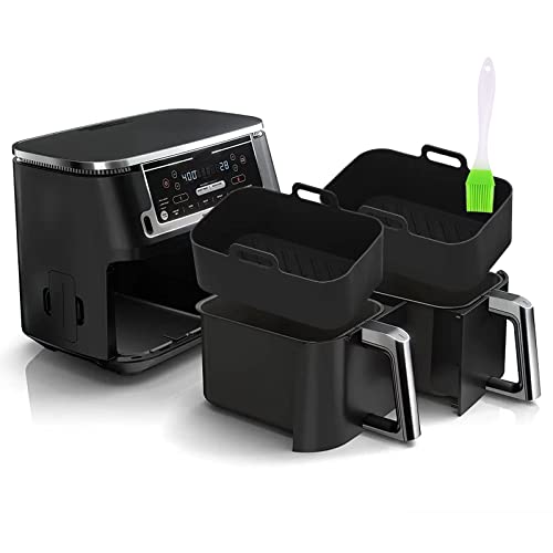 Specification: VintFun® Air Fryer Silicone Pot Rectangular for Ninja Foodi Dual DZ201 DZ401, 4Pcs, Reusable Silicone Airfryer Liner Replacement Baking Tray Basket Insert, Non-stick, Easy Cleaning, Food Safe, Black