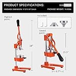 LABOR SAVING – Designed with an ergonomic rubberized handle, which takes the minimal efforts to get maximal effect; The handle is durable and withstands 2300 PSI to extract juice completely; A heavy-duty base with suction feet creates further stability and reduces sliding and tipping