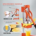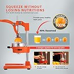 SIMPLE OPERATION – This manual orange juicer is easy to operate, since all you need to do is to cut the fruit in half, put one half in the device and press down on the handle to get fresh juice without losing any nutrition; The pulp and seeds are left in the strainer core which is effective and provides the purest juice