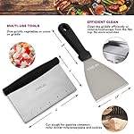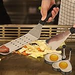 OUR GRIDDLE ACCESSORIES HAS EVERYTHING YOU NEED-they are all made in high-quality Stainless steel.It includes TWO spatulas, TWO bottles, TWO Egg Rings, ONE Scraper,ONE flippers and ONE Tong.It can be used as a restaurant grade tool as also a great camping accessories for the grill or BBQ.Our metal utensils will be able to stand any heat from cooking!