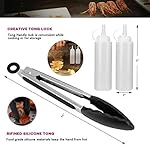 Complete TOOL set – 2 oversized professional grade restaurant style stainless steel spatulas, great for flipping burgers, pancakes, veggies and all other grill or griddle applications. 2 different stainless steel chopper/scraper to dice food and scrape griddles clean. 2 premium leak-free fine tip bottles for condiments and liquids like oil or water,1 silicone oil brush, all you need in our one package