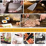 Specification: Vomelon Flat top Grill Griddle Accessories Professional BBQ Cooking Kit Hibachi Grill Accessories Dishwasher Safe Spatulas,Egg Rings,Bottles,Scraper,Flipper,Tong, Brush