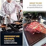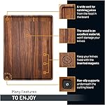 ? [CONVENIENT AND DURABLE] Our wood cutting boards are made in solid materials, resist heavy knife cuts, soaking, chopping. Will stand daily use at home or commercial, for restaurants, BBQs, parties, picnic. Includes 3 magnetic labeled points to attach knives or metal utensils.